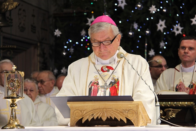 Mszy św. przewodniczył bp Mirosław Milewski, biskup pomocniczy diecezji płockiej. Wraz z nim modlili się: biskup kaliski Edward Janiak, biskup pomocniczy Łukasz Buzun, bp senior Stanisław Napierała, bp senior Teofil Wilski, o. Tadeusz Rydzyk, kilkudziesięciu kapłanów, wierni z diecezji kaliskiej, a szczególnie dekanatów kaliskiego pierwszego, ostrowskiego pierwszego i opatóweckiego oraz osoby konsekrowane z diecezji kaliskiej i pielgrzymi z całej Polski. W homilii bp Milewski dziękował osobom konsekrowanym za gorliwą służbę w Kościele. - Dziś dziękujemy tym zastępom Waszych współbraci i Was za świadectwo życia zakonnego. Nie byłoby roku 1918, ale też nie byłoby roku 1989, gdyby nie Wasza mrówcza, mozolna, ukryta, a nierzadko szykanowana przez władze PRL praca u podstaw, z najbardziej tego potrzebującymi. W dzieło misji prorockiej wpisały się przez wiele wieków dziesiątki tysięcy zakonników, idących z posługą słowa. Od pierwszych benedyktynów, którzy przynieśli tak wielu z naszych przodków chrzest, przez franciszkanów i dominikanów, tłumaczących zawiłości wiary, jezuitów i redemptorystów – mistrzów słowa i jego przekazu, aż po salezjanów, pracujących cierpliwie z młodzieżą – podkreślał hierarcha. Wskazywał też na rolę, jaką w Polsce odgrywają media katolickie, szczególnie Radio Maryja i Telewizja Trwam. - O ile trudniej byłoby dzisiaj w Polsce mówić o Bogu i Jego Kościele, gdyby nie wkład tych właśnie mediów w tak bardzo zróżnicowany polski rynek radiowo-telewizyjny. O ile trudniej żyłoby się milionom Polaków, starszych i młodszych, pracujących i emerytów, gdyby nie wspólna modlitwa na tych antenach, katechezy, dyskusje, rozmowy niedokończone. O ile trudniej byłoby zrozumieć polską rzeczywistość, gdyby nie te – czasami bardzo wyraźne – znaki sprzeciwu – powiedział biskup pomocniczy diecezji płockiej. Zachęcał wiernych, aby prosili Boga o światło dla siebie i swoich najbliższych. - Z gromnicami w ręku, jak nasi ojcowie, przychodzimy w to dzisiejsze święto, aby prosić Boga o światło. Potrzebują tego światła nasze rodziny, tak bardzo zranione różnymi bolesnymi sytuacjami: brakiem dzieci, chorobami, rozwodami, zazdrością. Potrzebują go nasze szkoły, zwłaszcza katolickie, w dobie reorganizacji, by były miejscem wychowania i zdobywania wiedzy – zaznaczył celebrans. Prosił też o światło dla wspólnot diecezjalnych, parafialnych i lokalnych. - Potrzebują tego światła nasze parafie i diecezje, a zwłaszcza seminaria duchowne i nowicjaty zakonne, gdzie czasem płomień zapału przygasa i woła o nowych, młodych, którzy wezmą do ręki tę pochodnię Kościoła. Potrzebują tego światła nasze lokalne wspólnoty, nasze „małe ojczyzny”, bo czasem nazbyt mocno zapanowały tam ciemności. Potrzebują tego światła katolickie media, by jego blask zadziwiał ludzi i przyciągał do wiary i zaufania Bogu. Potrzebuje tego światła każdy z nas, by „światłość w ciemności świeciła i ciemności jej nie ogarnęły” – mówił bp Milewski.