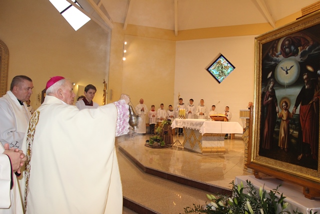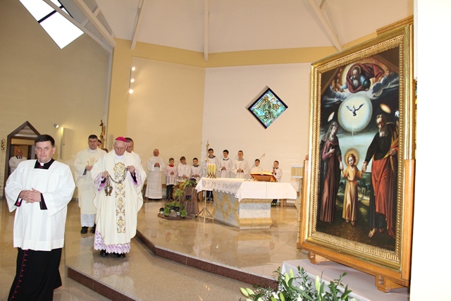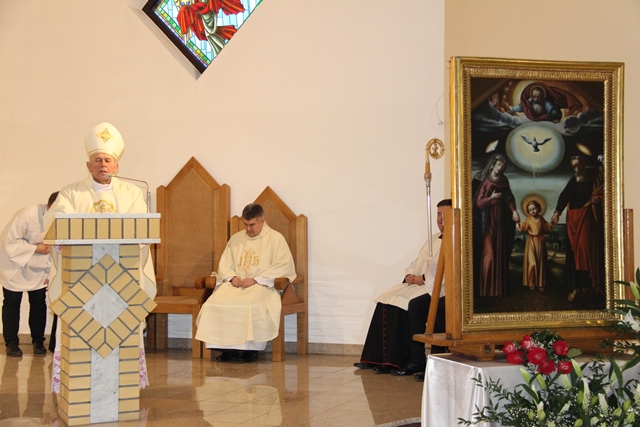 W homilii bp Stanisław Napierała przypomniał, że kopia obrazu św. Józefa Kaliskiego pobłogosławiona przez Jana Pawła II w Rzymie przemierzyła całą diecezję kaliską na początku jej istnienia. – Wszędzie św. Józef był przyjmowany po królewsku i zobaczyliśmy, że w każdej części diecezji ludzie kochają św. Józefa. Witali Go z miłością i wielką wiarą. I tak św. Józef rozpoczął scalanie naszej diecezji. Minęło już ponad 20 lat. W tym czasie powstały nowe parafie, a wśród nich Wasza parafia Matki Bożej Różańcowej, do której dzisiaj przybył św. Józef – powiedział celebrans.