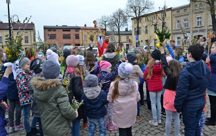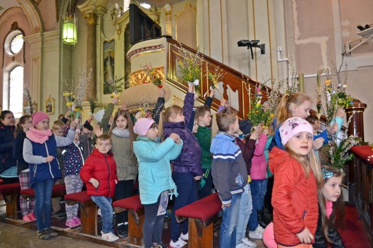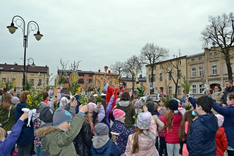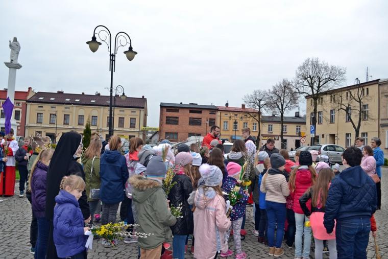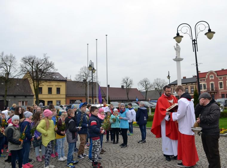 Około godz. 11:00 na mikstacki Rynek zaczęły przychodzić dzieci z palmami w rękach, ale nie brakowało także osób dorosłych. O godz. 11:00 w mikstackim wieczerniku w niedziele sprawowana jest Msza Święta ze szczególnym udziałem dzieci i młodzieży. O godzinie jedenastej w asyście ministrantów niosących krzyż na Rynek przybył ks. wikariusz Krzysztof Lipiński, który po odmówieniu specjalnej modlitwy pobłogosławił palmowe gałązki. Następnie procesjonalnie za krzyżem zgromadzeni na Rynku młodsi i starsi parafianie ze śpiewem na ustach, z palmami w rękach udali się na Mszę Świętą do kościoła farnego. Tu ks. Krzysztof pobłogosławił palmy zgromadzonych w kościele, następnie rozpoczęła się Msza Święta podczas której odczytany został opis Męki Pańskiej. Podczas Mszy Świętej śpiewał parafialny zespół młodzieżowy.