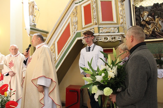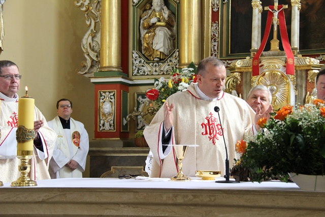 Podkreślał, że ołtarz jest najważniejszym miejscem w świątyni. – Na ołtarzu dokonuje się wielka tajemnica naszej wiary. Taki ołtarz ustawił pośrodku uczniów sam Jezus Chrystus w Wielki Czwartek w Wieczerniku. Dziś skłaniamy głowy przed poświęconym ołtarzem, który przeznaczony jest dla spraw świętych, bo przy każdej Mszy św. na ołtarz przychodzi Pan Jezus ukryty w Najświętszym Sakramencie – zaznaczył kaznodzieja.