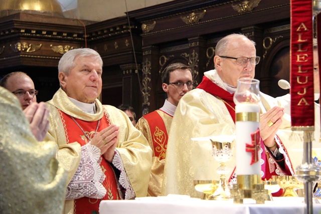 Wskazał na patronkę dnia dzisiejszego św. Katarzynę ze Sieny, która jest patronką Europy. Przekonywał, że dzisiejsza Europa potrzebuje takich świadków. - Czy potrzebna jest w XXI w. wiara w Chrystusa w Europie? Europa w swojej konstytucji nie ma odniesienia do chrześcijaństwa, co tak bardzo bolało św. Jana Pawła II. Europa bez sztuki, architektury, muzyki inspirowanej chrześcijaństwem, bez kultury, która wynika z chrześcijaństwa byłaby karykaturą samej siebie. To chrześcijaństwo współtworzyło Europę. Tysiąc lat przed powstaniem Unii Europejskiej widziano konieczność budowania zjednoczonego kontynentu w oparciu o naukę Jezusa Chrystusa. Ci, którzy położyli podwaliny pod dzisiejszą zjednoczoną Europę inspirowali się nie czym innym tylko właśnie Ewangelią – stwierdził hierarcha.