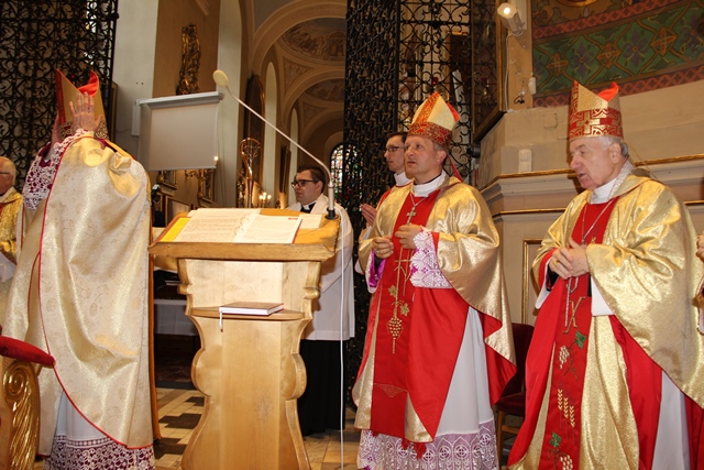 Biskupów, księży i wiernych powitał ks. prał. Jacek Plota, kustosz Sanktuarium św. Józefa w Kaliszu, który zaznaczył, że modlitwie towarzyszą relikwie polskich męczenników II wojny światowej, m.in.: św. o. Maksymiliana Marii Kolbego, bł. ks. Wincentego Frelichowskiego, bł. ks. Józefa Stanka Pallotyna. Dodał, że w 2010 r. abp Józef Michalik ofiarował kaliskiej bazylice Księgę Upamiętniającą Kapłanów, którzy zginęli w czasie II wojny światowej. Są tylko dwie takie księgi. Jedna znajduje się na Jasnej Górze, a druga u św. Józefa w Kaliszu. Poinformował, że na dzisiejszą uroczystość zostały przygotowane wystawy na temat cudownego ocalenia księży z Dachau i ich pielgrzymek wdzięczności do św. Józefa w Kaliszu. Wydano także nowe książki pt.: „Polscy księża w niemieckim obozie koncentracyjnym w Dachau” ks. prof. Leszka Wilczyńskiego i „Okruchy wojennych wspomnień” ks. Leona Poprawy pod redakcją ks. dr. Sławomira Kęszki.