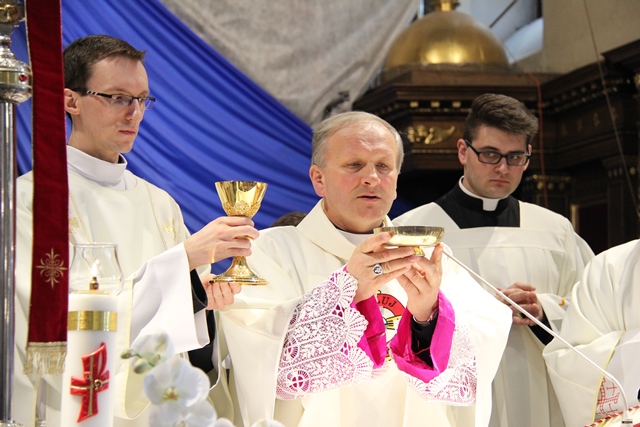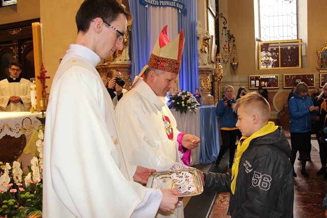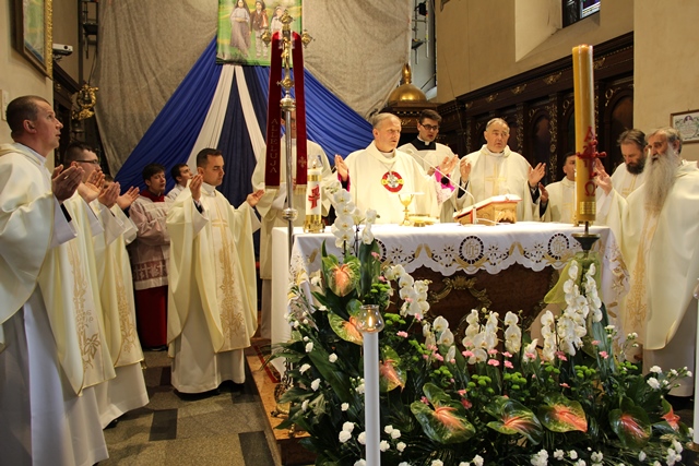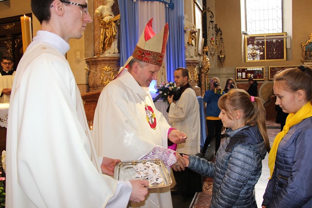 Młodzieżowe Dni Wspólnoty zakończyła Msza św. w Sanktuarium św. Józefa pod przewodnictwem bp. Łukasza Buzuna, który w homilii odniósł się do dzisiejszej Ewangelii mówiącej o Eucharystii. Biskup podkreślał, że każdy człowiek potrzebuje pokarmu z nieba, czyli Eucharystii i to ona powinna być w centrum życia. – W Eucharystii przyjmujemy Pana Jezusa do swego serca. Zostaliśmy z Nim związani przez chrzest święty. Pamiętajmy o Jezusie w codziennej modlitwie, a także osobistych rozmowach – mówił biskup pomocniczy diecezji kaliskiej. Życzył młodym, aby poprzez udział w Eucharystycznym Ruchu Młodych wzrastała w nich wiara. Bp Buzun poświęcił i wręczył młodzieży Międzynarodowe Krzyże Eucharystycznego Ruchu Młodych. Następnie wszyscy obecni w kaliskiej bazylice odnowili wspólnie przyrzeczenia Eucharystycznego Ruchu Młodych. Na zakończenie Mszy św. w Kaplicy Cudownego Obrazu św. Józefa ks. Łukasz Luźny, duszpasterz Eucharystycznego Ruchu Młodych w diecezji kaliskiej wraz z s. Danutą Pusty, moderatorką krajową ERM-u z ramienia Zgromadzenia Sióstr Urszulanek odczytali akt zawierzenia całej wspólnoty św. Józefowi.