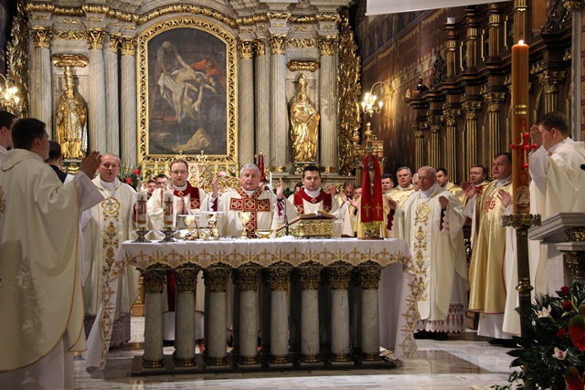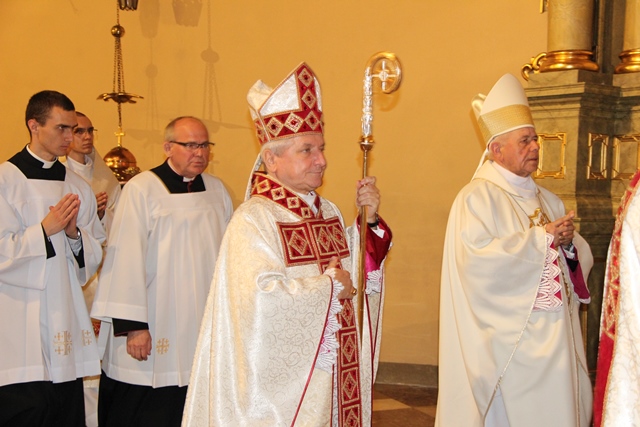 Stwierdził, że droga kapłana nie może różnić się od drogi Pierwszego Kapłana, Jezusa Chrystusa. – Bądźcie mężni w trudnościach, w kryzysach. Pamiętajcie. Słońce nie zawsze świeci. Przyjdą może kiedyś burze i nawałnice. W życiu Chrystusa było „hosanna”, ale było i „ukrzyżuj”. I w waszym życiu będzie „hosanna”. Będą chwile, gdy was będą ludzie chwalić, zachwycać się wami, ale będą chwile, kiedy was będą krzyżować, niesłusznie może oczerniać, przeinaczać wasze intencje. Nie zrażajcie się tym. Idźcie. Musicie pomóc dźwigać krzyż Chrystusowi – przekonywał hierarcha.