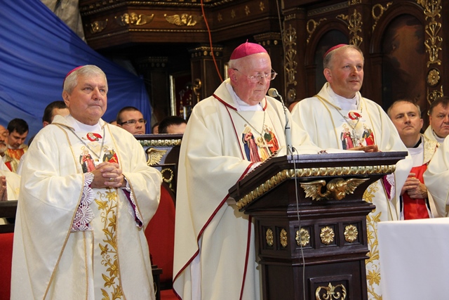 Wskazywał, że rodzina znajduje się dzisiaj pośrodku wielkiego zmagania między dobrem a złem, między życiem a śmiercią. – Jeśli świat, w którym żyjemy, tak boleśnie doświadcza rozdwojenia to zauważmy, że to rozdwojenie najbardziej dotkliwie przechodzi przez rodzinę, wokół której ciągle podnosi się wielka wrzawa i co chwilę dochodzi do wielkiego wzburzenia. I dlatego trzeba każdej chrześcijańskiej rodzinie powtórzyć te słowa, które usłyszał od Jezusa św. Paweł: „Odwagi, trzeba bowiem, żebyście zaświadczyli o Mnie”. Potrzeba odwagi, bo wielka jest siła świadectwa, jakie dają katoliccy małżonkowie trwający wiernie w złożonej wzajemnie przysiędze, prowadzący na co dzień chrześcijańskie życie, przekazujący je jak najcenniejszy skarb następnym pokoleniom. Niech św. Józef, patron tego miejsca, opiekun całego Kościoła wyprasza taką odwagę wszystkim małżonkom – mówił kaznodzieja.