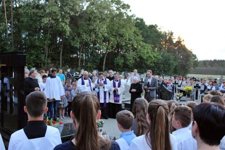 Ku niebu popłynęła modlitwa, pojawiły się kwiaty, zapłonęły lampki -dowód pamięci parafian z Chynowej o wieloletnim Pasterzu- Śp. Ks. Prałacie Edmundzie.