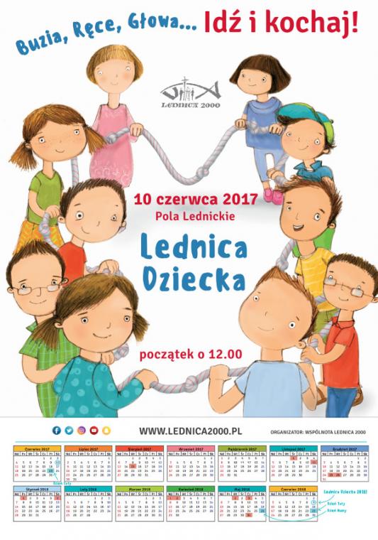 "Buzia, Ręce, Głowa … Idź i Kochaj!” to hasło tegorocznego spotkania Lednicy Dzieci. Zapowiada ono dużo radosnej zabawy, wspaniałą naukę modlitwy o rozważaniu tajemnic różańca, porywające tańce i śpiewy w duchu lednickim!! niesamowite pamiątki dla uczestników.