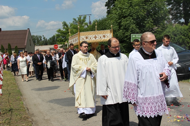 Po Mszy św. odbyła się procesja z Najświętszym Sakramentem. Wierni przeszli z drewnianej świątyni pw. Świętej Trójcy do kościoła Matki Bożej Częstochowskiej, gdzie biskup kaliski poświęcił tablicę upamiętniającą 25-lecie powstania diecezji kaliskiej i 20. rocznicę obecności Jana Pawła II w Kaliszu. Uroczystość uświetniła kapela Żychlinioki.