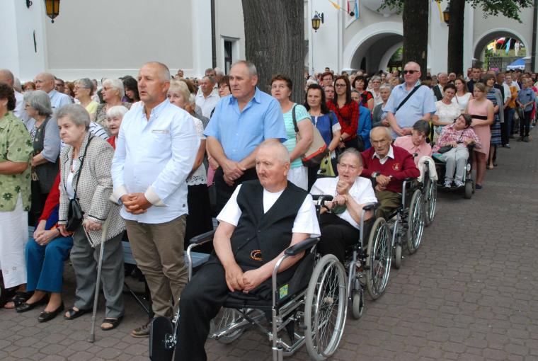 W Godzinie Miłosierdzia do Matki Bożej pielgrzymowali ludzie chorzy oraz ci, którzy w szczególny sposób im pomagają. Głównym celebransem Eucharystii był ks. Józef Wojnicki - diecezjalny duszpasterz służby zdrowia. Wygłosił on też homilię do zgromadzonych licznie wiernych. Rozpoczął od przytoczenia historii Hioba. Opowiedział, jak stracił on cały majątek i wszystkie dzieci, ale się nie odwrócił od Boga. Bóg dał, Bóg wziął, niech imię Pana będzie pochwalone. Na samym końcu zachorował na trąd. Dobro przyjęliśmy z ręki Boga. Czemu zła przyjąć nie możemy? Był oskarżany o popełnienie wielkich grzechów. Pozostał wierny, a Bóg mu wynagrodził cierpienie. Choroba i cierpienie jest z nami obecne już od początków ludzkości. Biorą one źródło z grzechu pierworodnego. Jezus umarł cierpiąc z miłości do nas. Na Kalwarii zapłacił cenę za miłość człowieka. Krzyż - miejsce najokrutniejszych śmierci - po męce Chrystusa zmienił swoje znaczenie. Jezus nadał wartość cierpieniu. Gdy dotyka nas cierpienie, starajmy się nadać mu sens, poprzez ofiarowanie go w jakiejś intencji - apelował kaznodzieja.