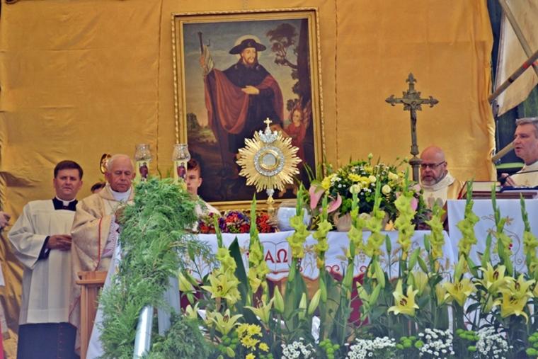 Uroczystej sumie odpustowej sprawowanej o godz. 11:00 przewodniczył ks. bp Senior Stanisław Napierała. Wcześniej bp Senior dokonał obrzędu błogosławieństwa zwierząt, który stanowi nierozłączny element uroczystości odpustowych ku czci św. Rocha w Mikstacie. Na początku Eucharystii ks. kan. Krzysztof Ordziniak, kustosz Diecezjalnego Sanktuarium Świętego Rocha w Mikstacie skierował słowa podziękowania za przybycie na uroczystości odpustowe do ks. Biskupa Stanisława Napierały. Wyraził radość z obecności ks. biskupa wśród nas. Ks. kustosz przywitał kapłanów, przedstawicieli władz, pielgrzymów, parafian. Poprosił następnie ks. Bpa, by sprawował tę sumę w intencji wszystkich pielgrzymujących na uroczystości odpustowe.
