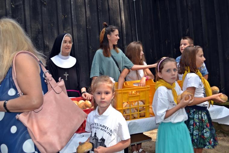 Po mszy św. Ks. Biskup odczytał litanię do św. Rocha. Następnie procesja z Najświętszym Sakramentem przeszła cmentarnymi alejkami. Błogosławieństwo Najświętszym Sakramentem zakończyło uroczystą sumę odpustową. Zgodnie z tradycją po Mszy św. wierni zabierali do domów małe chlebki, by podzielić się nimi z bliskimi. Przy rozdawaniu chlebków pomagali uczestnicy spotkań w Szkole św. Rocha oraz dziewczęta z Eucharystycznego Ruchu Młodych.