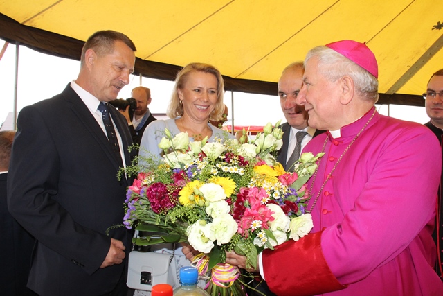 Dziękował rolnikom za ich trud pracy na roli. – Drodzy rolnicy tu obecni, przyjmijcie od nas dziś nasze podziękowanie za wasz trud, za wasze poświęcenie. Was dzisiaj w szczególny sposób polecamy opiece dobrego Boga. Za waszą troskę o chleb powszedni naród jest wam wdzięczny – podkreślił hierarcha.