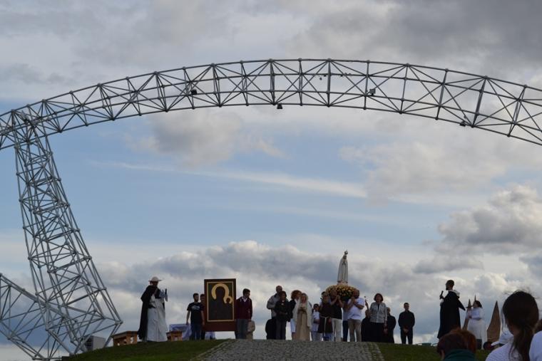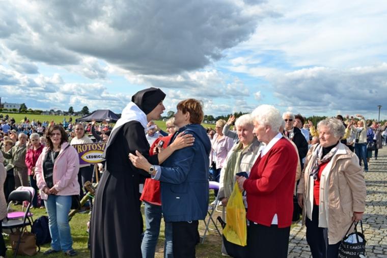 O godz. 12:45 rozpoczęła się Eucharystia, której przewodniczył ks. bp Michał Janocha, który także wygłosił homilię. Podkreślił w niej, że poprzez chrzest staliśmy się ludźmi wolnymi. Nawiązując do symboliki wagi, że gdy jej szale znajdują się na jednakowym poziomie wszystko w życiu może się wydarzyć. Od decyzji człowieka, od jego wyborów zależy w którą stronę przechyla się jej szale. Ks. biskup podkreślił, że człowiek stawiany jest nieustannie w sytuacjach wyboru miedzy prawdziwym dobrem, dobrem pozornym, które często podawane jest człowiekowi w pięknym opakowaniu. W dalszej części homilii ks. bp rozważał znaczenie trzech słów: rozwaga, uwaga, odwaga, podkreślając ich znaczenie w kontekście rozwoju duchowego człowieka. Ks. Biskup podkreślił, że człowiek współczesny ma wiele problemów ze skupieniem uwagi na tym, Który jest w życiu najważniejszy. Przywołał przykład Matki Teresy z Kalkuty, która potrafiła skoncentrować swoją uwagę na tym co działo się w jej życiu w konkretnym momencie. Podkreślił, że na tym właśnie polega „ tajemnica świętości”. Ks. biskup zachęcał zebranych, rozwagę, uwagę i odwagę prosili Matkę Bożą. Po Eucharystii był czas na posiłek i chwilę odpoczynku. W godzinie miłosierdzia odśpiewana została Koronka do Miłosierdzia Bożego. W popołudniowej części spotkania Lednicy Seniora uczestniczył Prymas Polski abp Wojciech Polak. Podczas odprawiania Koronki młodzież wniosła obraz Jezusa Miłosiernego. Następnie zostały zaprezentowane dwie inscenizacje biblijne: „Rola Maryi – Maryja wyprowadza nas z ukrycia” oraz „Ty jesteś Zacheuszem – Pragnij i zaryzykuj”. Siostry zakonne w geście rozesłania wykonując na czole uczestników spotkania znak krzyż wypowiadały słowa: Idź i kochaj. Podczas modlitewnego spotkania pod Bramę III Tysiąclecia została przyniesiona figura Matki Bożej Fatimskiej, obraz Czarnej Madonny oraz pusta rama. Podczas wprowadzania figury i obrazu ku niebu popłynęła modlitwa różańcowa. Na Legnickie Pola przybyli także przedstawiciele Wspólnoty Betlejem. Złożone przez nich świadectwa nawrócenia i spotkania z Jezusem zrobiły na zebranych wielki wrażenie.