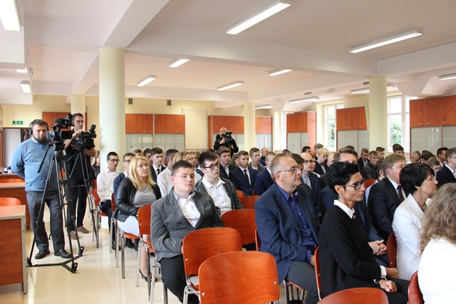 Po Mszy św. wszyscy udali się do budynku Centrum Józefologicznego, w którym mieści się szkoła. Symbolicznego przecięcia wstęgi dokonali prezydent Kalisza Grzegorz Sapiński i uczeń Mikołaj Wawrzyniak.W auli szkoły osobom, które przyczyniły się do powstania Zespołu Szkół Technicznych Diecezji Kaliskiej podziękował dyrektor ks. Adam Kraska. Młodzieży życzył, aby dobrze wykorzystali czas rozwoju swojej młodzieńczej pasji. W imieniu uczniów przemówił Adam Larnet, który podziękował wszystkim, którzy w jakikolwiek sposób przyczynili się do realizacji tego przedsięwzięcia, a w szczególności biskupowi kaliskiemu Edwardowi Janiakowi.Radość z nowo powstałej szkoły wyraził prezydent Kalisza Grzegorz Sapiński, który podkreślał, że placówka jest szansą dla młodych, aby w przyszłości realizowali swoją karierę w regionie.W swoim przemówieniu bp Edward Janiak wyjawił, że utworzenie takiej szkoły było jego marzeniem. Zachęcał uczniów, aby w trakcie nauki rozwijali swoje talenty. – Ten czas na kształcenie jest darem. Nie zmarnujcie tego czasu, ponieważ to, z czego tutaj skorzystacie będzie owocować w przyszłości – powiedział ordynariusz diecezji kaliskiej. Zebrani w nowej szkole mieli okazję obejrzeć program artystyczny w wykonaniu uczniów.