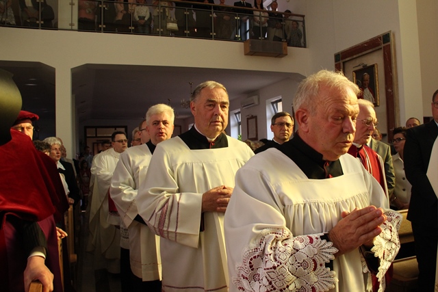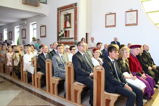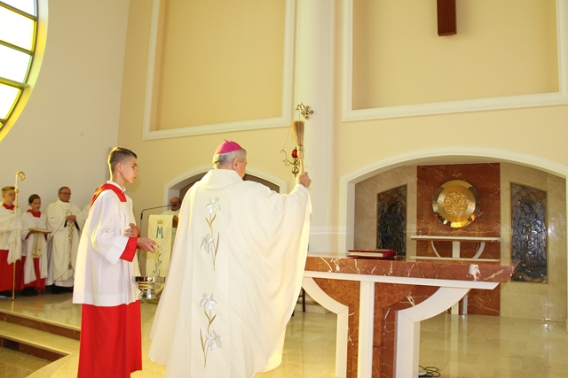 Witając biskupa, kapłanów i wiernych ks. Robert Lewandowski podkreślał, że ta świątynia została wybudowana trudem wielu ludzi. Dodał, że nie byłoby jej, gdyby nie charyzmatyczna postawa i szlachetne kapłańskie życie ks. prał. Józefa Sieradzana, który latach 80. odkrył potrzebę stworzenia w tym miejscu ośrodka duszpasterskiego, a potem parafii.