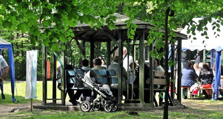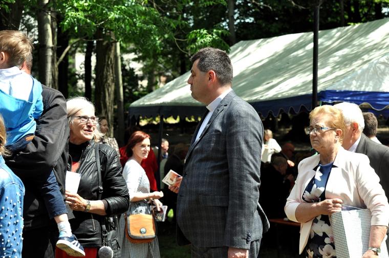 Ponadto, jak podkreślił ks. Jubilat, ponawiając pod koniec mszy świętej zaproszenia na wspólne biesiadowanie obecny wygląd parku to zasługa pracy parafian. Warto jednak dodać, że pracy podjętej z inicjatywy ks. kanonika Krzysztofa. Gdy przed laty zaproponował rewitalizację parku parafialnego niewielu wierzyło, że jest ona możliwe. Znalazła się jednak grupa parafian, którzy z wielkim zaangażowaniem, poświęcając swój wolny czas trudzili się, by uporządkować teren dawnego parku. Potem przyszedł czas na jego zagospodarowanie, częściowe nasadzenie nowych drzew i krzewów. W parku pojawiły się ławki, altanki, plac zabaw, a na skalniku znalazło się miejsce dla figury św. Rocha. W parku organizowane są festyny i majówki. Tu postanowił świętować swój Srebrny Jubileusz wraz z rodziną, zaproszonymi gośćmi i parafianami ks. kanonik Krzysztof.