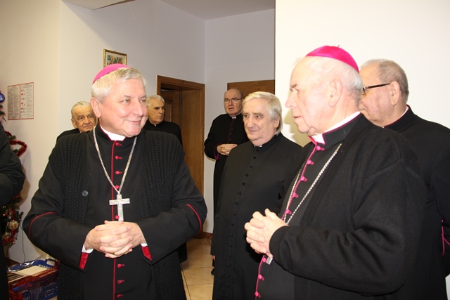 W spotkaniu opłatkowym uczestniczyli też biskup pomocniczy Łukasz Buzun, biskupi seniorzy Stanisław Napierała i Teofil Wilski oraz dyrektor domu ks. prał. Jan Wolniak.