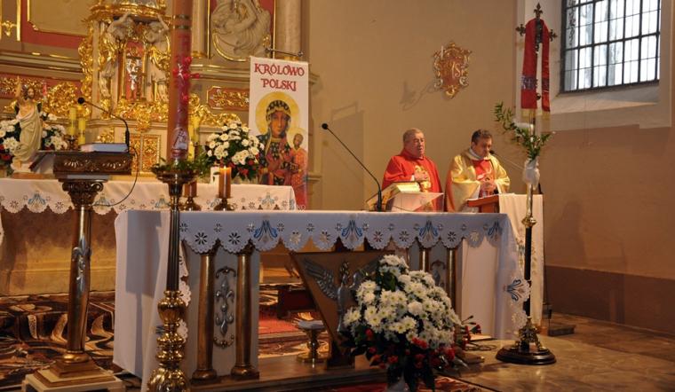 Druhny i druhowie OSP Mikstat zgromadzili się w strażnicy skąd wraz z pocztem sztandarowym przeszli do kościoła. Przybyli tu także strażacy z Kaliszkowic Kaliskich.