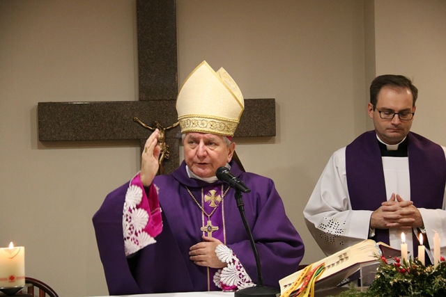 Po Mszy św. biskup kaliski Edward Janiak przełamał się opłatkiem z rodzinami i zasiadł do wspólnej wieczerzy.