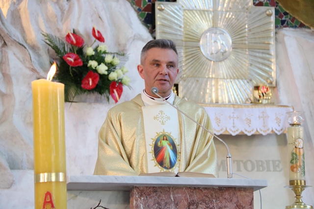 W homilii biskup kaliski wskazywał na św. s. Faustynę Kowalską, której sam Jezus polecił, by świat pouczyła o Bożym Miłosierdziu.