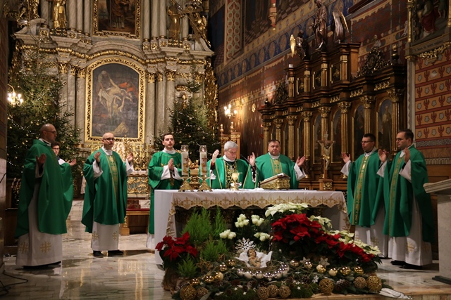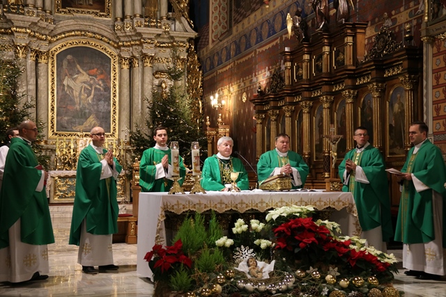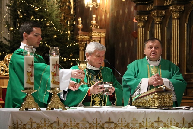Wraz z biskupem kaliskim Edwardem Janiakiem Mszę św. koncelebrowali: ks. prałat Adam Modliński, proboszcz katedry, ks. kanonik Marcin Papuziński, wicekanclerz Kurii Diecezjalnej, ks. Witold Kałmucki, diecezjalny duszpasterz młodzieży, ks. Daniel Zarębski i ks. Marek Muzyka.