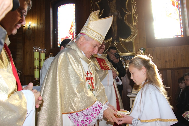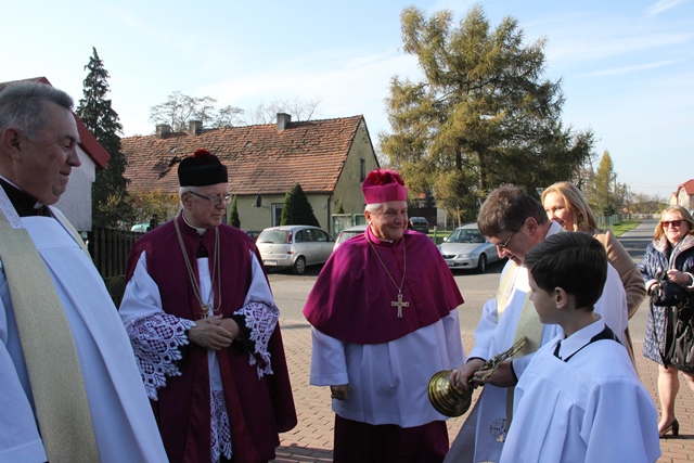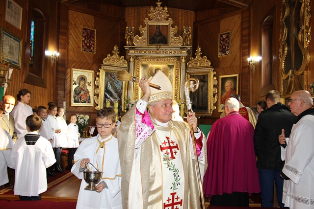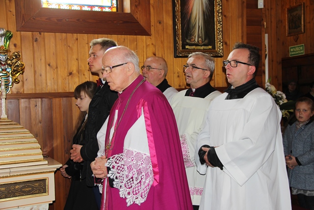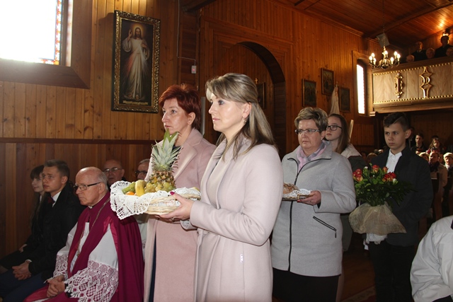 Dziękował wiernym za troskę o świątynię. - Na Kościół trzeba patrzeć przez pryzmat własnego księdza proboszcza. Kardynał Wyszyński mawiał, że obraz Kościoła nie jest taki jak go widzimy w wielkich miastach, ale trzeba iść do najmniejszych wspólnot parafialnych. Jest was niewielu, ale z wielką troską dbacie o dom Boży. To jest piękne, że następnemu pokoleniu przekażecie kościół zadbany, który świadczyć będzie o mieszkającej tutaj wspólnocie. Ta świątynia jest wyrazem waszego szacunku dla Pana Boga – stwierdził bp Janiak.