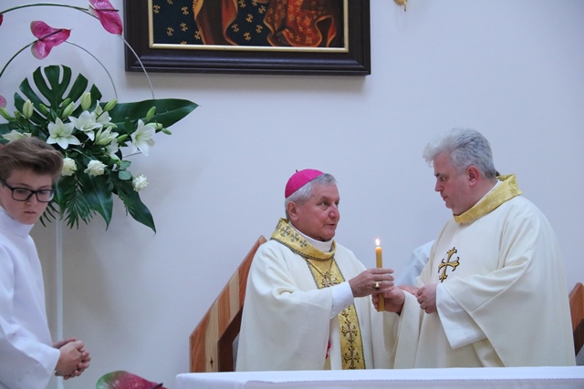 Dziękował parafianom za troskę o świątynię. Słowa wdzięczności wypowiedział do obecnego na uroczystości ks. prał. Marka Otręby, który był budowniczym kościoła. Wskazał, że bardzo wiele dokonał przez ostatnie trzy lata ks. prał. Leszek Szkopek.