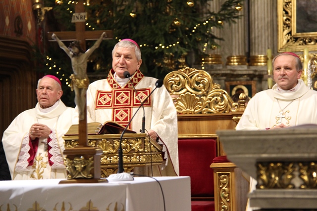 Nawiązując do wigilijnego stołu podkreślał, że dzielenie się chlebem to dzielenie się sobą, swoim sercem i miłością. - Dziś stajemy przy stole, na którym położony jest chleb. Cokolwiek dobrego robimy w życiu da się przełożyć na chleb, a co nie da się przełożyć na chleb nie jest dobre, jest niemoralne, jest złe. Cały wysiłek ojca, matki, praca codzienna, trudy, cierpienia dadzą się przełożyć na chleb. Przy jednym stole siada rodzina, siadają małżonkowie. Kto nie jest zdolny usiąść przy jednym stole to rozwodzi się. Kto nie potrafi usiąść przy jednym stole ten nie posiada ducha życzliwości, braterstwa, pojednania – zaznaczył hierarcha.
