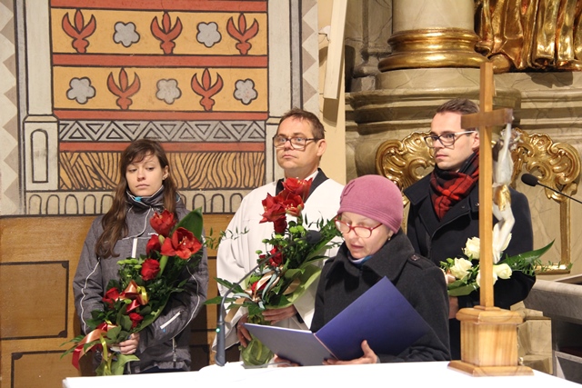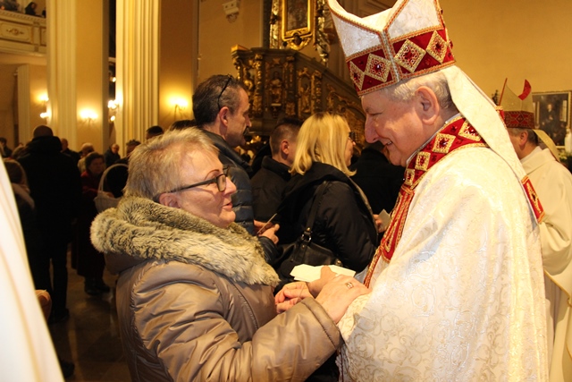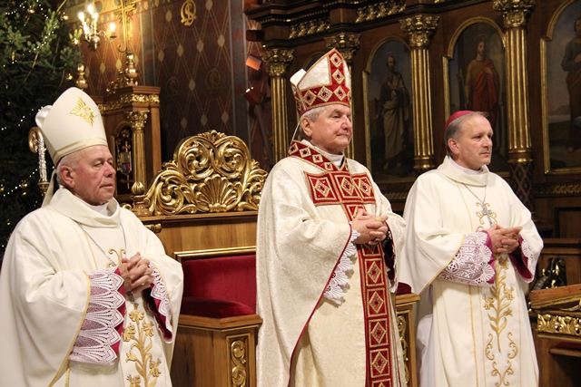 Po Mszy św. biskupi przełamali się opłatkiem z wiernymi. Uroczystość uświetniła orkiestra „Gród nad Prosną” i chór „Canticum”.