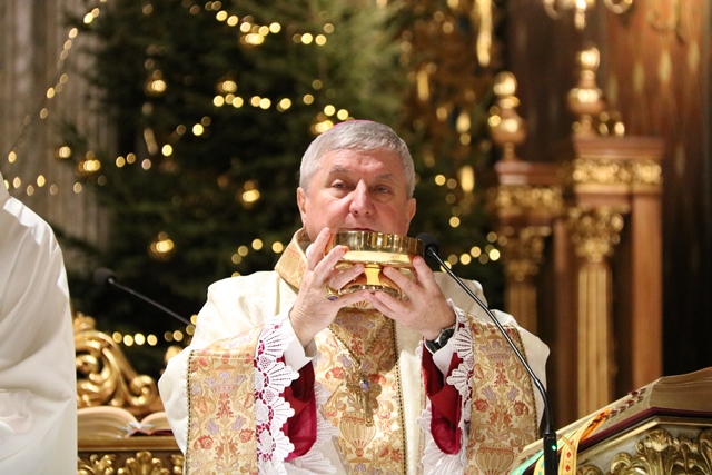 Wskazywał, że Jezus przychodząc na ziemię przebóstwił człowieczeństwo i dlatego każdemu człowiekowi należy się szacunek. - Ta dzisiejsza noc jest nocą miłości Boga do człowieka. Każdemu człowiekowi należny jest szacunek, dobre słowo, uśmiech, a czasem też trzeba podzielić się chlebem – mówił bp Janiak.