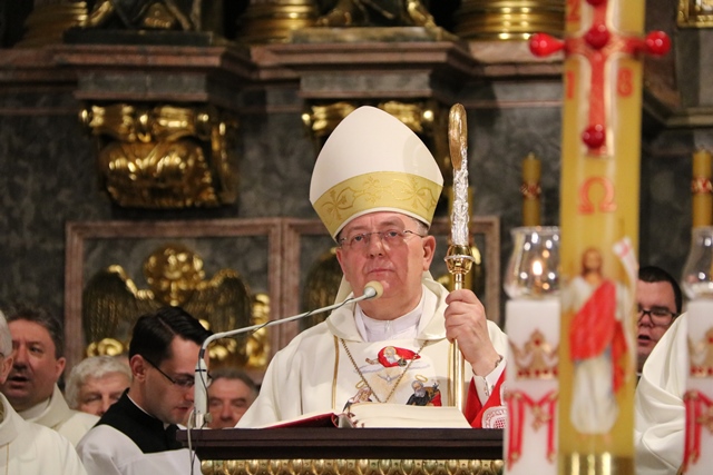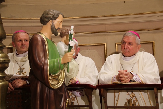 Polecał polskie rodziny św. Józefowi. - Józefie sprawiedliwy, Opiekunie Zbawiciela czuwaj nad naszymi rodzinami, nad każdym życiem, ucz nas zgody i solidarności, pomagaj zachować tożsamość katolicką i narodową oraz budować pokój, braterstwo z innymi narodami na fundamencie prawdy i miłości ewangelicznej. Bądź stróżem naszej ojczyzny i wraz Maryją wypraszaj nam błogosławieństwo Jezusa Zmartwychwstałego – powiedział bp Leszczyński.