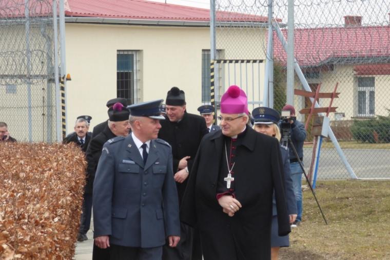- Zawsze, kiedy przybywam do takich miejsc, zwłaszcza kiedy jest to Zakład Karny, czy Areszt Śledczy, zawsze przypominają mi się słowa Jezusa z Ewangelii: …byłem w więzieniu, a przyszliście do mnie – mówił o tej wizycie ksiądz Biskup - Kiedy przychodzimy do tego miejsca, to tak jak byśmy przychodzili do Jezusa i doświadczali Jego obecności. To też często powtarzamy skazanym, że z chwilą zamknięcia drzwi celi, niech nam towarzyszy świadomość, że jest z nami Jezus, mimo naszej niewierności, mimo naszej grzeszności, mimo różnych słabości, które towarzyszą nam każdego dnia. On zawsze pozostaje wierny i nigdy nas nie opuszcza. Ale też z miłością, troską, czeka powrotu, nawrócenia. Każdy czas jest dobry, aby takiej łaski nawrócenia doświadczyć, żeby przeżyć radość, wolność – radość, która pozwoli doświadczyć tego, że jestem wolny, ale wolny od grzechu. To jest najpiękniejsza radość, której im z całego serca życzę.