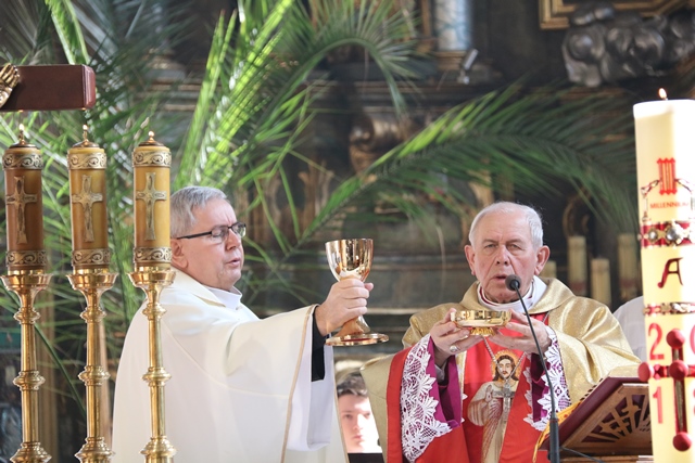 Zaznaczył, że w święto Bożego Miłosierdzia można otrzymać odpuszczenie win i kar za grzechy. - Można wrócić do tej świętości i czystości, jaka stała się naszym udziałem w chwili chrztu świętego, trzeba tylko przystąpić do źródła życia, to znaczy być w stanie łaski uświęcającej, przyjąć komunię świętą, mieć szczerą intencję, aby czynić dobre czyny ludziom i ufnie zawierzyć siebie Miłosierdziu Bożemu chociażby przez tę krótką modlitwę „Jezu ufam Tobie” – powiedział bp senior.