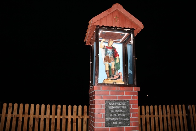 Po Mszy św. biskup poświęcił kapliczkę św. Michała Archanioła ufundowaną przez parafian jako wotum wdzięczności za 100 lat odzyskania przez Polskę niepodległości.