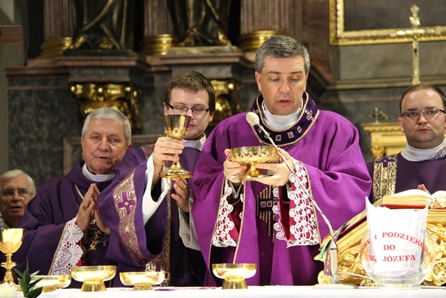Wskazał, że papież Franciszek udzielił łaski przeżywania nadzwyczajnego Roku św. Józefa w kaliskim sanktuarium. - Ojciec Święty przychylił się do mojej prośby i od pierwszej niedzieli Adwentu do 6 stycznia 2019 r. będziemy przeżywać w kaliskim sanktuarium nadzwyczajny Rok św. Józefa połączony z odpustem zupełnym. Ojciec Święty nasze kaliskie sanktuarium nazwał sanktuarium narodowym. Te dary są dla mnie i dla całej diecezji zadaniem, aby miłość i nabożeństwo do św. Józefa były obecne i rozwijały się w naszych rodzinach, parafiach, diecezji i ojczyźnie – powiedział bp Janiak.