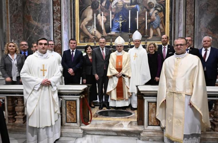 W okolicznościowej Mszy św., sprawowanej w 47. rocznicę inauguracji pontyfikatu św. Jana Pawła II, licznie uczestniczyli rodacy papieża Polaka, a także ambasadorowie akredytowani przy Stolicy Apostolskiej i Zakonie Maltańskim oraz przedstawiciele korpusu dyplomatycznego, w tym m.in. ambasador RP przy Stolicy Apostolskiej Adam Kwiatkowski wraz z małżonką i konsul RP w Rzymie Bartosz Skwarczyński.