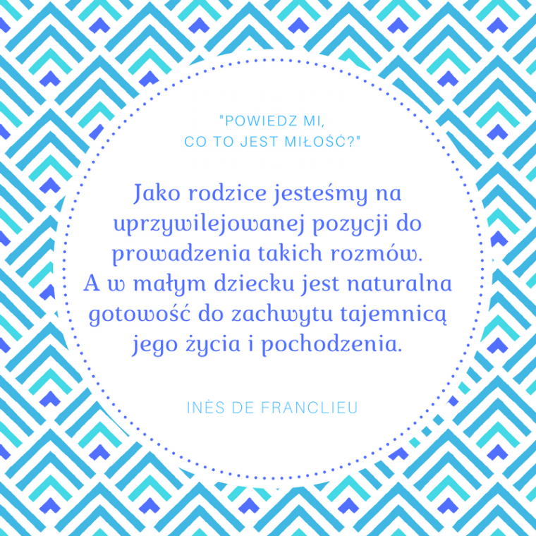 „Powiedz mi, co to jest miłość? Ciało-Miłość-Życie-Seksualność”; Inès de Franclieu; Wydawnictwo Inter Global Oświata, Warszawa 2019.
