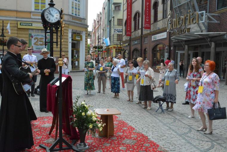 Po ewangelizacji na ulicach Legnicy wszystkie grupy spotkały się przed Kurią biskupią, gdzie odbył się koncert uwielbienia, który poprowadziła Wspólnota Miłości Ukrzyżowanej.