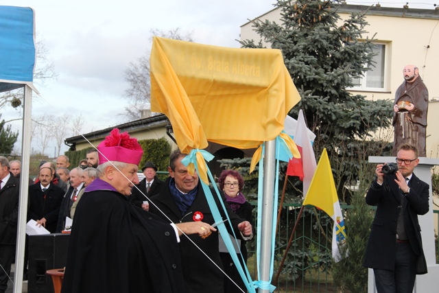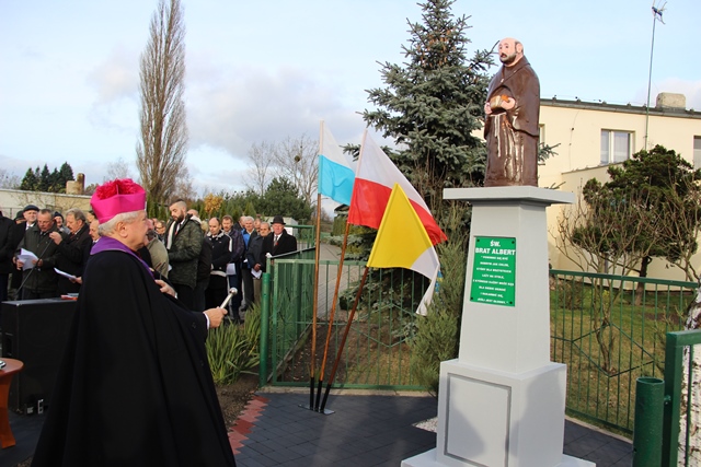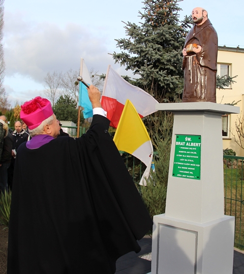 Posąg własnoręcznie wykonał kierownik placówki Ireneusz Stefaniak. Biskup poświęcił także nową drogę prowadzącą do schroniska. Oficjalne otwarta ulica będzie nosić imię św. Brata Alberta.