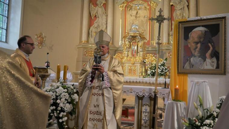 Na zakończenie Eucharystii ks. Abp pobłogosławił zebranych relikwiarzem. Była też możliwość uczczenia św. Jana Pawła II w znaku relikwii. Piękna duchowo była niedziela 13 czerwca w mikstackiej parafii. Obecność św. Jana Pawła II wśród nas w znaku relikwii jest zachętą do pochylenia się i pogłębionej refleksji nad pozostawionym nam przez Niego nauczaniem.