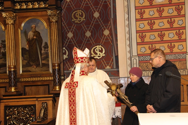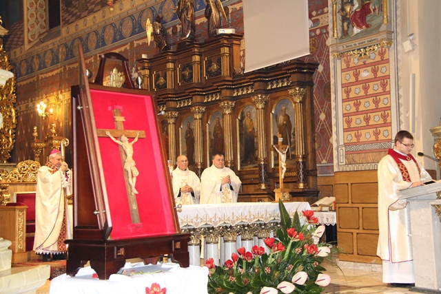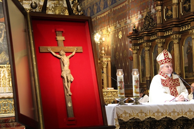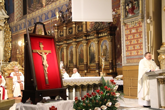 Podczas Mszy św. bp Edward Janiak poświęcił kopię krzyża papieskiego wykonaną przez tego samego rzeźbiarza. Przed udzieleniem pasterskiego błogosławieństwa biskup kaliski nawiązując do uroczystości Chrystusa Króla Wszechświata przekonywał, że krzyż jest znakiem zwycięstwa nad śmiercią. - Chciałbym, abyśmy wychodząc z tej katedry mieli przeświadczenie, że wszyscy zmierzamy do Królestwa Bożego. Podstawową prawdą naszej wiary jest prawda o zmartwychwstaniu. Chrystus na krzyżu nie pozostał, On nas odkupił na krzyżu, ale zmartwychwstał. Z tej prawdy płynie optymizm chrześcijański, dlatego warto być dobrym człowiekiem i wypełniać Boże przykazania, bo w perspektywie mamy Królestwo Boże – przekonywał bp Janiak, który dziękował członkom Akcji Katolickiej za zaangażowanie w życie Kościoła kaliskiego.