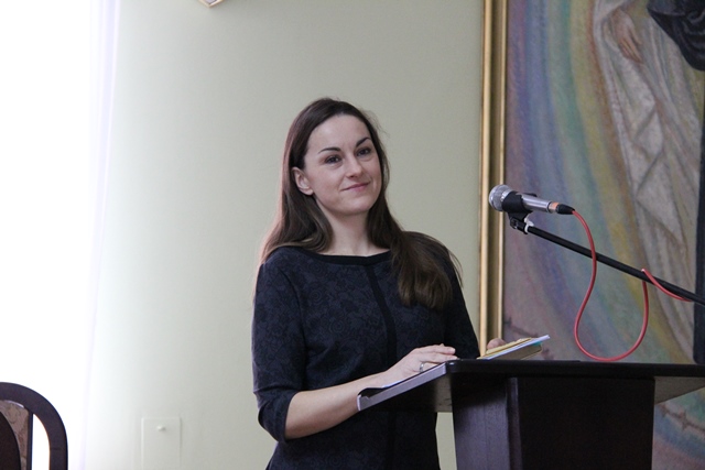 Wykład na temat „aksjologicznego wykluczenia człowieka zbędnego w wybranej literaturze rosyjskiej” wygłosiła dr Paulina Aleksandra Grubek, absolwentka Uniwersytetu Kardynała Stefana Wyszyńskiego, a także studentka Wiedzy o teatrze Akademii Teatralnej im. Aleksandra Zelwerowicza w Warszawie.