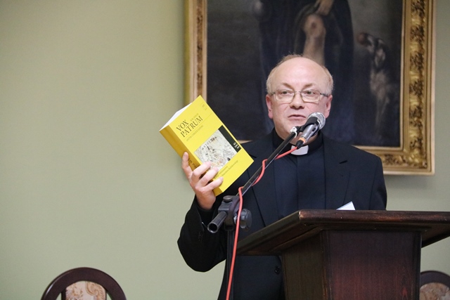 Wieczorem odbyła się uroczystość wręczenia Jubileuszowej Księgi Pamiątkowej dr. Stanisławowi Kalinkowskiemu, który od ponad 50 lat jest tłumaczem bardzo wielu dzieł z języka greckiego i łaciny na język polski. – Pan Stanisław przetłumaczył kilkadziesiąt dzieł w swoim życiu, z tego kilkanaście dzieł Orygenesa. Z tłumaczeń korzystają całe pokolenia, ja również korzystałem z tłumaczenia Konstytucji Apostolskiej. Dzięki tej pracy mamy do dyspozycji tłumaczenia tekstów antycznych w języku polskim. Są to znakomite tłumaczenia. W niektórych ośrodkach naukowych w krajach Europy Zachodniej nie ma tak bogatych tłumaczeń dzieł ojców jakich dokonał pan Stanisław – wskazuje ks. kan. Michał Kieling.