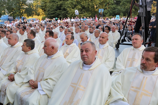 Mszy św. przewodniczył kard. Kazimierz Nycz, metropolita warszawski, w dykasteriach watykańskich: członek Kongregacji ds. Kultu Bożego i Dyscypliny Sakramentów, członek Kongregacji ds. Duchowieństwa, członek Papieskiej Rady ds. Kultury; w ramach Konferencji Episkopatu Polski członek Rady Stałej, przewodniczący Rady Ekonomicznej, członek Zespołu ds. Kontaktów z Konferencją Episkopatu Niemiec. Wraz z nim modlili się: biskup kaliski Edward Janiak, biskup pomocniczy diecezji kaliskiej Łukasz Buzun, bp senior Stanisław Napierała, bp senior Teofil Wilski, dyrektor Radia Maryja o. Tadeusz Rydzyk, ks. prałat Jacek Plota, kilkudziesięciu kapłanów oraz licznie zgromadzeni pielgrzymi z całej Polski.