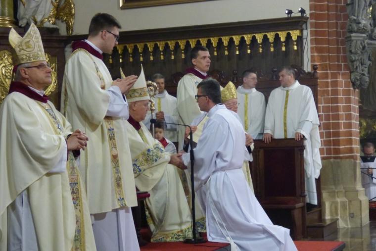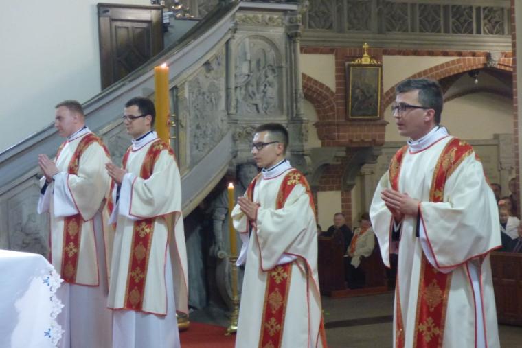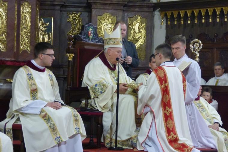 Kandydatów do święceń, przedstawił Biskupowi legnickiemu rektor Wyższego Seminarium Duchownego ks. dr Piotr Kot. Na diakonów wyświęceni zostali: Adam Bogdała z par. św. Wojciecha w Jeleniej Górze, Karol Diduszko z parafii w Pogorzeliskach, Artur Jaguszczak z par. Podwyższenia Krzyża Świętego w Legnicy oraz Łukasz Toporek z parafii w Ścięgnach.