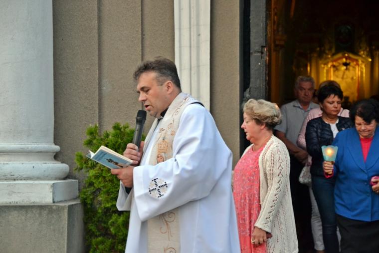 Rozważając trzecia tajemnicę ks. kanonik podkreślił, że jej treścią jest spotkanie Niepokalanej z Jej Boskim Synem. Zaakcentował, że Maryja jak każdy człowiek musi uwierzyć, że Dziecięciu spoczywającym na Jej rękach mieszka Bóg. Zachęcał, byśmy prosili w tej tajemnicy, by nasze spotkanie z Jezusem w Eucharystii upodabniało się do spotkania Maryi z jej Synem, a dokonywało się ono w duchu wiary i miłości. Czwarta tajemnica miała nam pomóc zrozumieć, że w spotkaniu z Chrystusem Zbawicielem realizuje się sens naszego życia, byśmy niczego więcej nie szukali. Treścią piątej tajemnicy radosnej jak zaznaczył kapłan jest spotkanie Niepokalanej z dwunastoletnim Jezusem w świątyni. Spotkanie to poprzedzony było trzydniowym poszukiwaniem. Ksiądz Krzysztof zachęcał: „ Uczmy się w rozważaniu tej tajemnicy, że i nasze spotkane z Chrystusem w tym życiu nie będzie wole od szukania w ciemności i cierpieniu. Przed nami Chrystus będzie się ukrywał po to, by nasza miłość dojrzewała w coraz większej czystości i bezinteresowności”. Czy nasza miłość jest dojrzała, bezinteresowna? Co powinniśmy zmienić, by coraz bardziej taką się stawała – to pytania, które być może zrodziły się w sercach uczestników lipcowego nabożeństwa fatimskiego, podczas którego ku niebu popłynęły także słowa modlitwa Anioła z Fatimy do Trójcy Przenajświętszej. W mikstackiej świątyni, której patronuje Święta Trójca nabierają one szczególnego znaczenia. Po zakończeniu modlitwy różańcowej za krzyżem i figurą Matki Bożej Fatimskiej ze śpiewem na ustach, z płonącymi lampionami wyruszyliśmy w procesji wokół kościoła. Gdy procesja powróciła do kościoła z wieży rozległo się bicie dzwonów wzywające nas do Apelu Jasnogórskiego. Nie mogło go zabraknąć podczas naszego modlitewnego spotkania, które zakończyło się błogosławieństwem udzielonym zebranym w mikstackim wieczerniku przez księdza proboszcza.