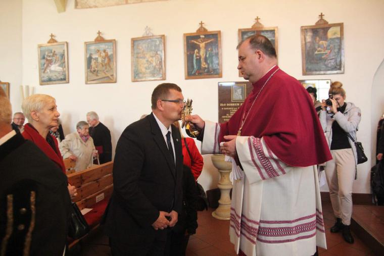 Na uroczystość przybyli również m.in.: poseł na sejm Krzysztof Kubów, przedstawiciele władz samorządowych: przewodnicząca Rady Powiatu w Lubinie Jadwiga Musiał, burmistrz Ścinawy Krystian Kosztyła, członkowie i zarząd NSZZ Solidarność Zagłębie Miedziowe, miejscowi radni oraz członkowie lokalnych stowarzyszeń. Jak zawsze licznie przybyły do swojego patrona poczty sztandarowe reprezentujące świat ludzi pracy całego Zagłębia Miedziowego oraz Sybiracy.