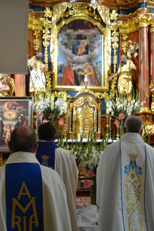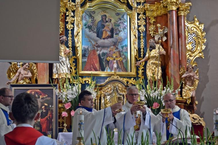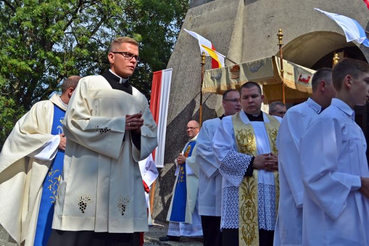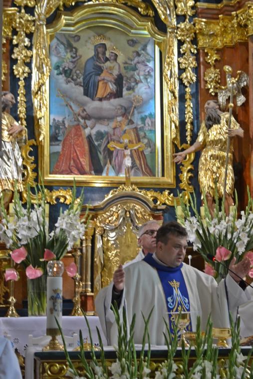 Kończąc kaznodzieja powiedział: „ Rozważając rodowód Jezusa Chrystusa nie zamartwiajmy się zbytnio, że jesteśmy, słabi, grzeszni. Jeśli przychodzimy do Chrystusa Pana i Jego Matki On z nami zrobi wielkie rzeczy. Bóg z tymi, którzy Go miłują współdziała we wszystkim. Amen”. Wiele ważnych słów wybrzmiało w homilii ks. kan. Jacka warto do nich powracać, uczynić je przedmiotem głębszej refleksji, a także rachunku sumienia. Po Mszy Świętej główny celebrans pobłogosławił ziarna zbóż. Następnie przy wystawionym Najświętszym Sakramencie odmówiona została Litania do Matki Bożej i procesja Eucharystyczna wyruszyła ścieżkami wiodącymi wśród grobów tych, którzy kiedyś oddawali cześć Matce Boskiej Kotłowskiej. Po końcowym błogosławieństwie odśpiewana została pieśń „ Boże coś Polskę”. Piękny jest ten odpustowy czas, dobrze spędzać go u stóp Matki Bożej Kotłowskiej, która z takim zatroskaniem spogląda na swe dzieci z ukoronowanego wizerunku.