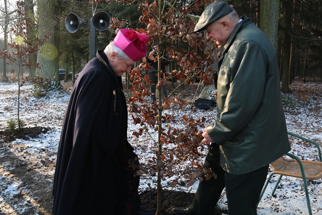 Biskup poświęcił miejsce kultu religijnego oraz pamięci ku czci leśników i myśliwych, a także posadził dąb.
