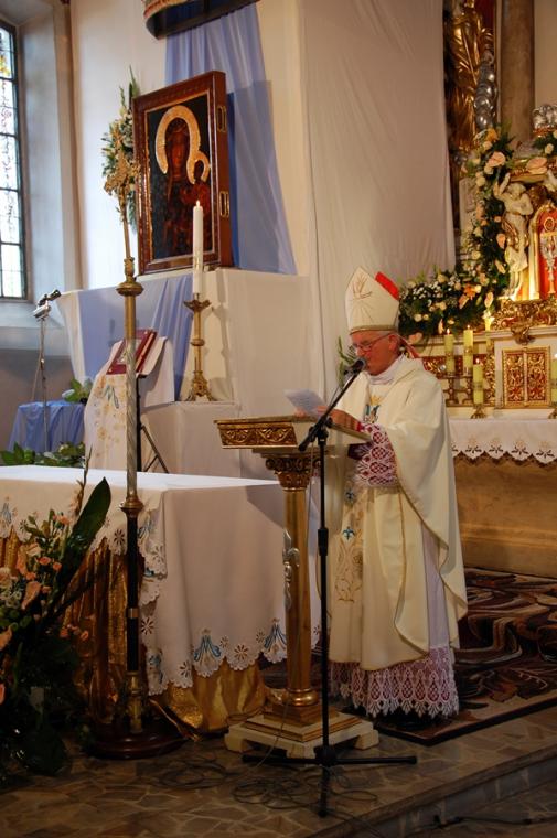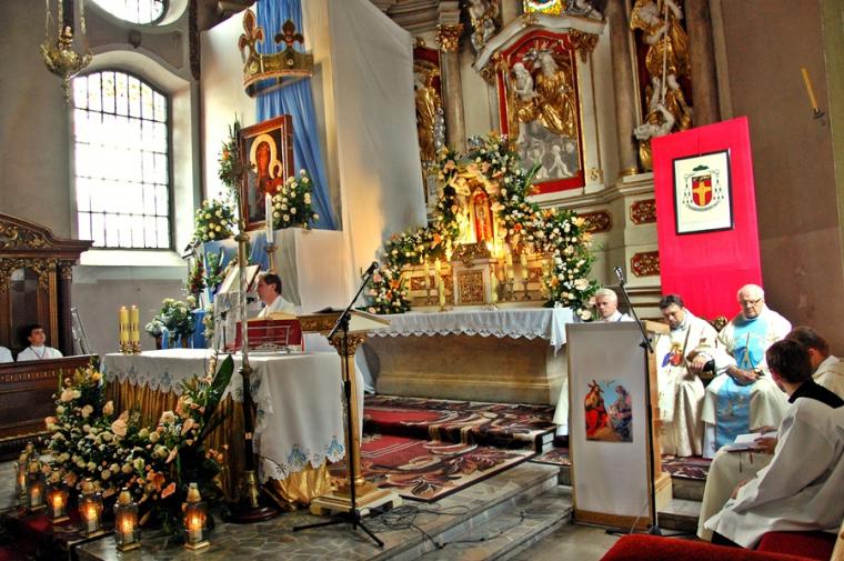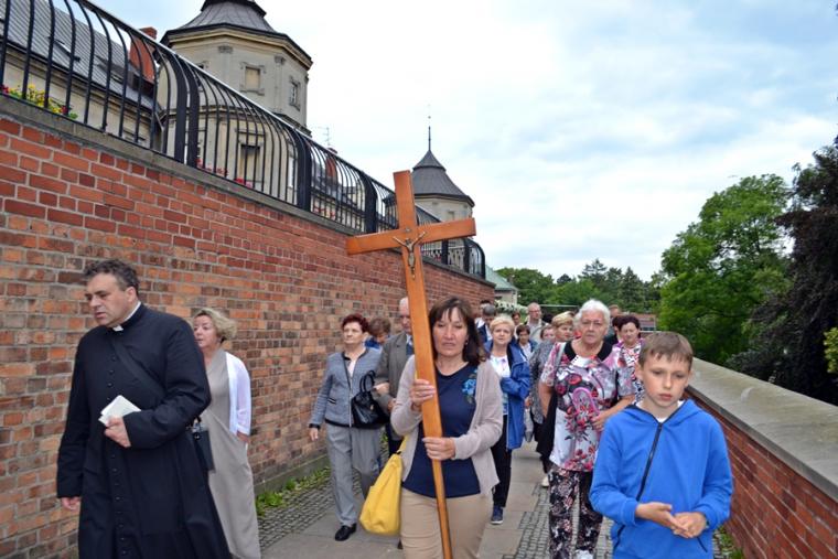 O godz. 16:00 uczestniczyliśmy w odprawianym przed obliczem Czarnej Madonny nabożeństwie różańcowym, podczas którego rozważane były tajemnice światła. Podczas pielgrzymki nie mogło zabraknąć Eucharystii. Uczestniczyliśmy w niej w Kaplicy Cudownego Obrazu, a ks. proboszcz sprawował ją w naszych intencjach. Po Mszy Świętej udaliśmy się na wały, by odprawić drogę krzyżową. Rozważania poszczególnych stacji koncentrowały się na problemie starości. Stanowiły zachętę do przeżywania tego okresu w duchu zaufania i zawierzenia Panu Bogu. Między poszczególnymi stacjami odmawialiśmy Koronkę do Miłosierdzia Bożego. Każdy kto czuł taką potrzebę mógł między stacjami przejąć krzyż. Po zakończonej drodze krzyżowej był czas na osobistą modlitwę i spotkanie z Matką i Jej Synem. Wiele osób w tym czasie modliło się w Kaplicy Cudownego Obrazu, ale także nawiedziło i zatrzymało się w Kaplicy Adoracji. Opiekun duchowy naszej pielgrzymki zachęcał nas, byśmy w tym pielgrzymkowym dniu rozważyli wszystkie tajemnice różańca. Zapewne był to czas, gdy wielu z nas kontemplowało tajemnice bolesne, powierzając Maryi także trudne, bolesne sprawy swoje i swoich bliskich. O godz. 19:00 uczestniczyliśmy w nabożeństwie czerwcowym. W słowie skierowanym do wiernych przewodniczący nabożeństwu Ojciec Paulin zwrócił uwagę na wezwanie Litanii do Najświętszego Serca Jezusowego zawarte w słowach: Serce Jezusa hojne dla wszystkich, którzy Cię wzywają. Nawiązał do kultu Serca Jezusowego. Zwrócił uwagę na obietnice dane Małgorzacie Marii Alacoque dla tych, którzy oddają cześć Jego Boskiemu Sercu. Zachęcał, by w naszych domach znalazło się miejsce dla krzyża, obrazu Jezusa, Matki Bożej, świętych. Gdy w Mikstacie rozległ się dźwięk dzwonów, przypominających o tym, że mamy być, pamiętać, czuwać, my wpatrując się w zatroskane oczy Czarnej Madonny uczestniczyliśmy w Apelu Jasnogórskim. Po Apelu wyruszyliśmy w drogę powrotną, podczas której odmówiliśmy tajemnice chwalebne różańca. To był piękny dzień...